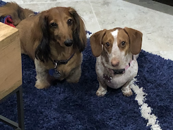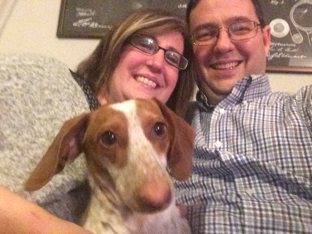 Jenna and Gavin had been talking adding a dog to the mix. Jenna's parents brought Riley home to be a companion for Roscoe. When Roscoe wasn't sure he wanted a life partner, we adopted Riley. Now Roscoe and Riley are best friends.